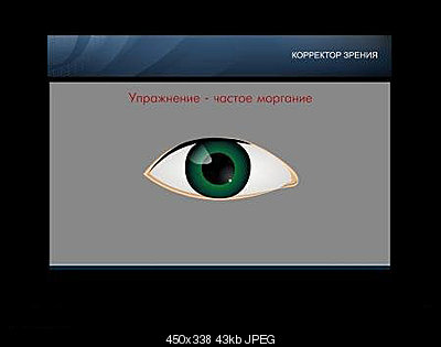 Назначение программы - восстановление или улучшение зрения, снятие усталости глаз, предотвращение ухудшения зрения. Принцип действия основан на двух основных моментах: Во - первых, на благотворном влиянии на зрение SIRDS - картинок. Влияние это было отмечено у пользователей программы «Корректор веса». Обратив внимание на этот факт, разработчики обратились к офтальмологическим источникам и выяснили, что при просматривании таких картинок тренируются глазные мышцы, соответственно, улучшается кровообращение. Все резервы организм переключает на контроль за глазами и нервные клетки испытывают повышенную нагрузку, что улучшает проводимость нервных волокон. Стереокартинки называют «спортом для глаз». Особенность их в том, что они заставляют глаза менять привычную точку фокусировки, тем самым сберегая зрение и помогая сохранить его остроту. Во - вторых, в программе задействованы элементы укрепляющей глаз гимнастики по методу Норбекова, а именно упражнения на расслабление глаз, улучшение кровообращения, укрепление глазных мышц. Результат - ежедневная работа с программой «Корректор зрения» дома или на работе способствует восстановлению и улучшению зрения, препятствует развитию миопии (близорукости) и гиперметропии (дальнозоркости), астигматизма и пресбиопии (утрата способности к фокусировке). Программа не имеет противопоказаний и особенно полезна будет учащимся и тем, кто много времени проводит за компьютером, ввиду повышенной нагрузки на зрение. Уже после первого применения Вы почувствуете положительное воздействие на зрение. А через 2 - 3 дня оно начнёт заметно улучшаться. Для достижения наилучшего результата мы советуем не прерывать курс работы с программой до полного восстановления зрения.